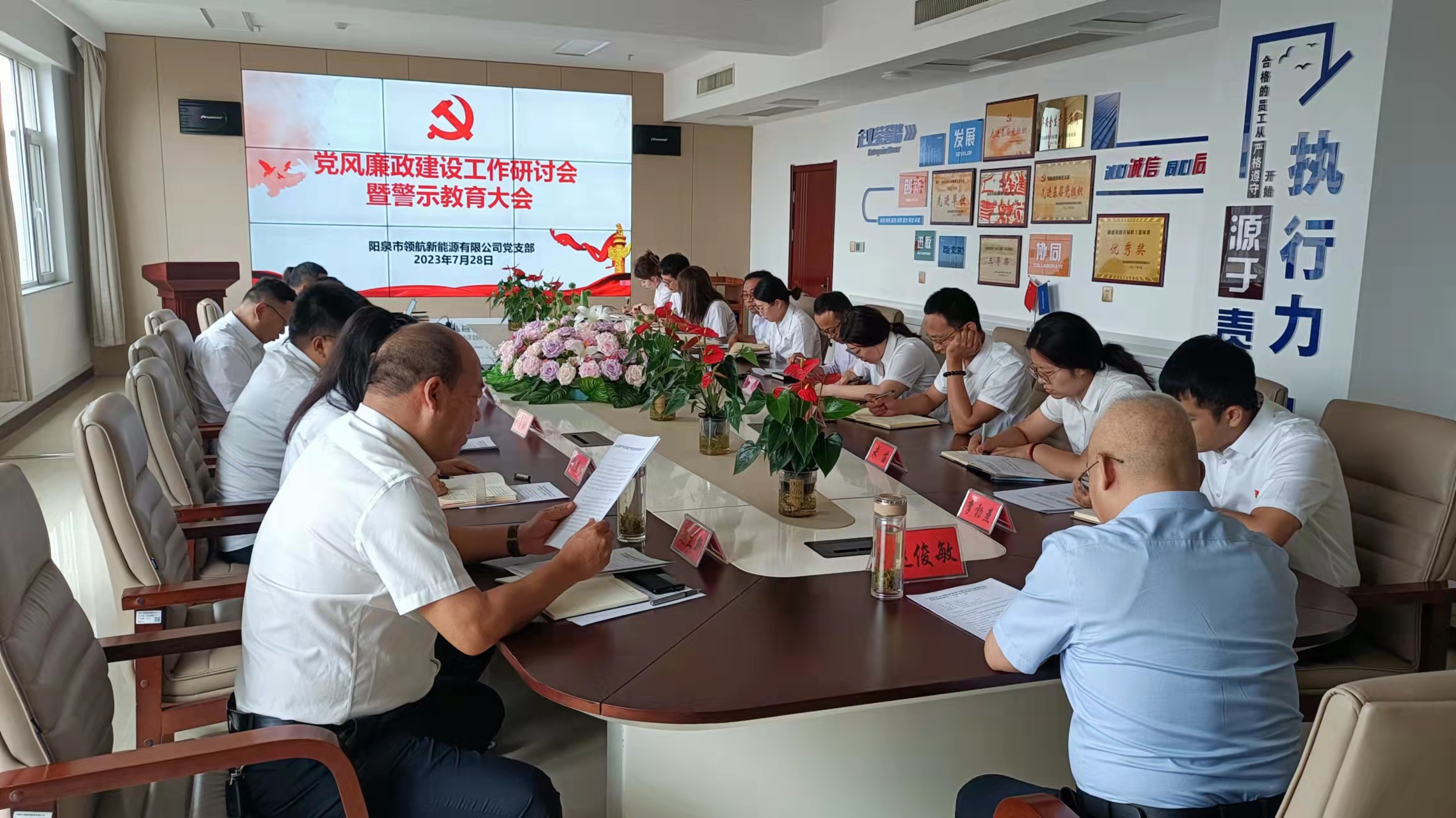7月28日,根據(jù)融盛集團(tuán)黨委前期安排,陽泉市領(lǐng)航新能源有限公司黨支部召開黨風(fēng)廉政建設(shè)工作研討會暨警示教育大會。參加此次會議的包括公司班子成員、全體黨員(含預(yù)備黨員)和中層干部,做到了“關(guān)鍵少數(shù)”全覆蓋。融盛集團(tuán)黨委專職副書記趙俊敏到會指導(dǎo)并作點評講話。